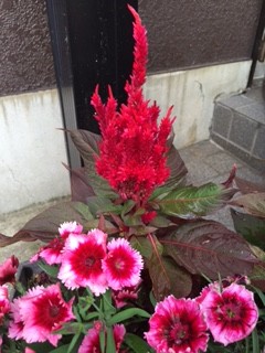 御香宮さん付近にて、ケイトウ&ダイアンサス、